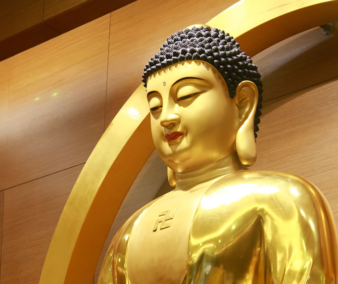 一樓、二樓大廳挑高,中央供奉釋迦牟尼佛,四周供奉阿彌陀佛。三樓至七樓為塔位區,各層皆供奉菩薩聖像。
